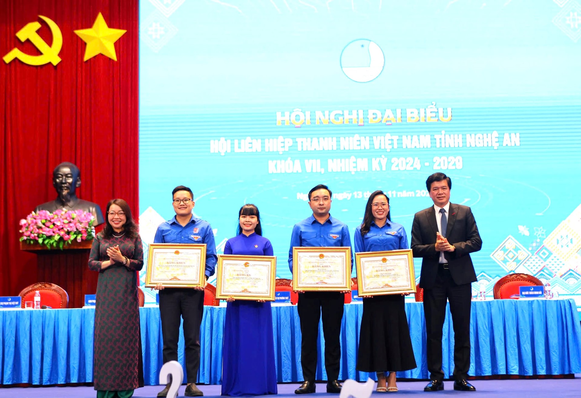 Nhân dịp Hội nghị, 3 tập thể và 5 cá nhân vinh dự được trao tặng bằng khen của Chủ tịch UBND tỉnh Nghệ An vì đã có thành tích xuất sắc trong công tác Hội và phong trào thanh niên trong giai đoạn 2024 - 2025. |