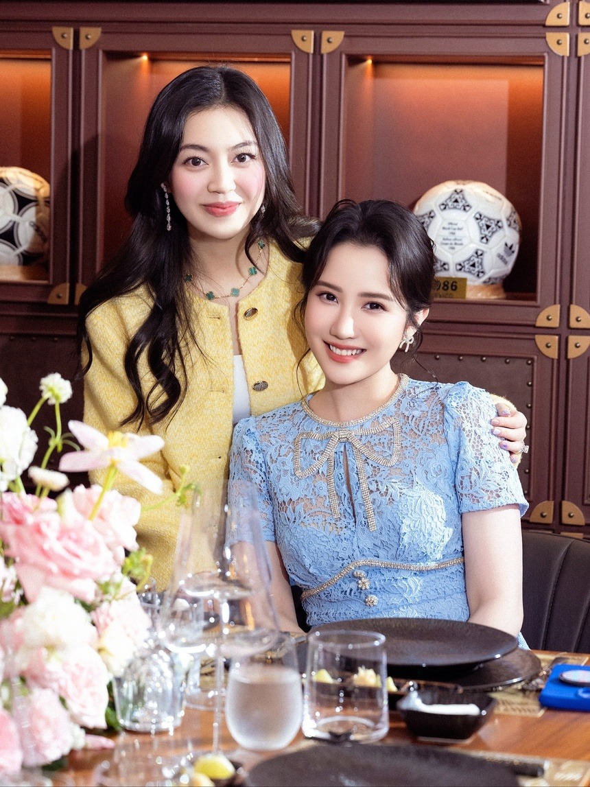 Rich kid Ngọc Thanh Tâm là một trong những người bạn chơi thân lâu năm với bà xã thiếu gia Phan Thành. Tại tiệc sinh nhật, cô nàng diện bộ váy hồng xinh xắn, kết hợp với đôi cao gót cùng tông. Trên story trang cá nhân, Ngọc Thanh Tâm đăng khoảnh khắc check-in thú vị khi trang phục của cô cũng trùng màu sắc chủ đạo của tiệc sinh nhật Primmy Trương, kèm bình luận hài hước "sinh nhật ai vậy chị ơi". |