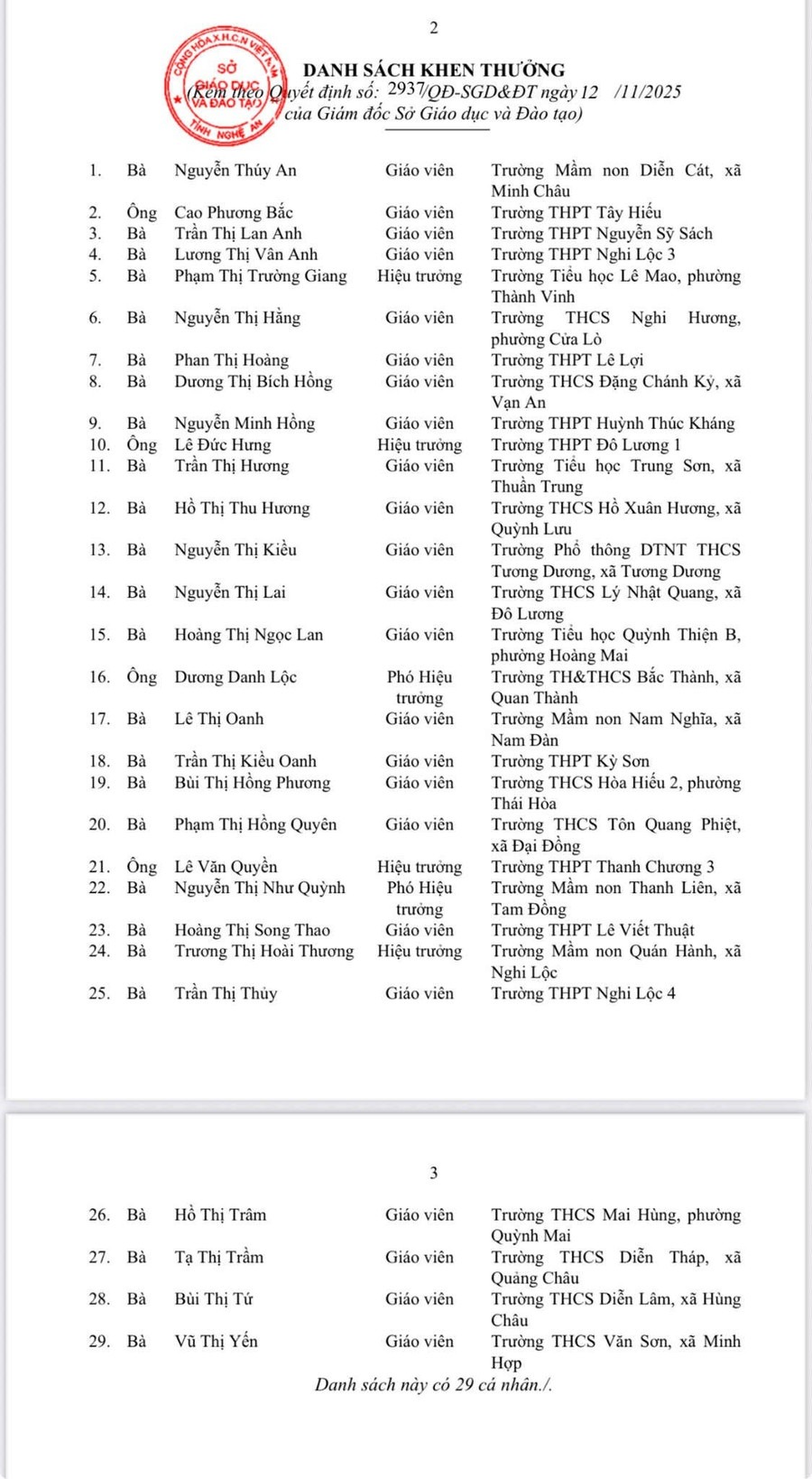 Danh sách 29 nhà giáo tỉnh Nghệ An nhận Quỹ phát triển tài năng giáo dục lần thứ năm 2025. |