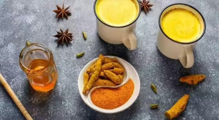 Curcumin từ nghệ có đặc tính kháng viêm. Các thử nghiệm ngẫu nhiên cho thấy việc sử dụng curcumin như một chất bổ sung có thể giúp giảm nhẹ cân nặng, chỉ số BMI và vòng eo. Sữa hạnh nhân có thể được dùng làm nền vì nó ít calo.