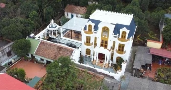 Tọa lạc giữa vùng quê thuộc khu vực huyện Tiên Du (cũ), Bắc Ninh, căn biệt thự dát vàng lộng lẫy nổi bật như một công trình châu Âu. Ảnh chụp màn hình NhaTo |