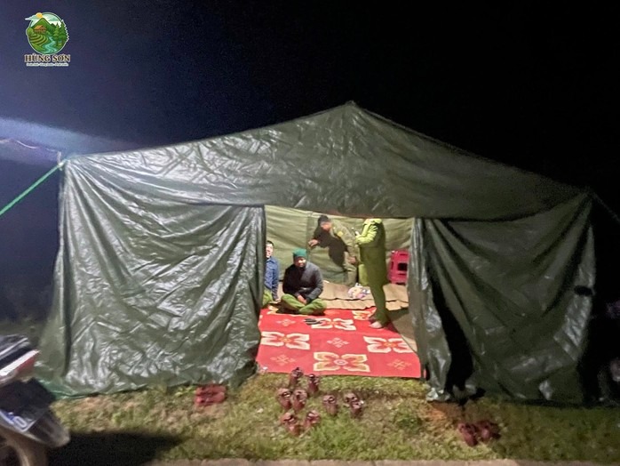 Tối 14-11, khu vực sạt lở trời lạnh xuống 14 độ, lực lượng chức năng phải đốt lửa sưởi ấm (Ảnh: xã Hùng Sơn) |