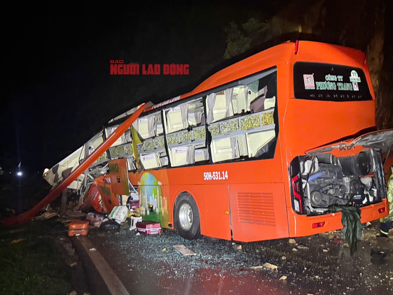Xe khách Phương Trang mang biển kiểm soát 50H-531.14 đang lưu thông trên đường Quốc lộ 27C hướng từ Đà Lạt đi Nha Trang, khi đến Km 45 thì bất ngờ bị đá tảng lớn đè trúng |