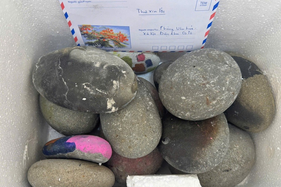Ngày 16/11, trao đổi với Tri Thức - Znews, ông Nguyễn Hải Linh, Trưởng phòng Văn hóa - Xã hội đặc khu Cô Tô (tỉnh Quảng Ninh), cho biết hai ngày trước đơn vị nhận một bưu phẩm đặc biệt gửi qua đường bưu điện từ Hạ Long. Bên trong là 14 kg đá cuội cùng một bức thư xin lỗi.