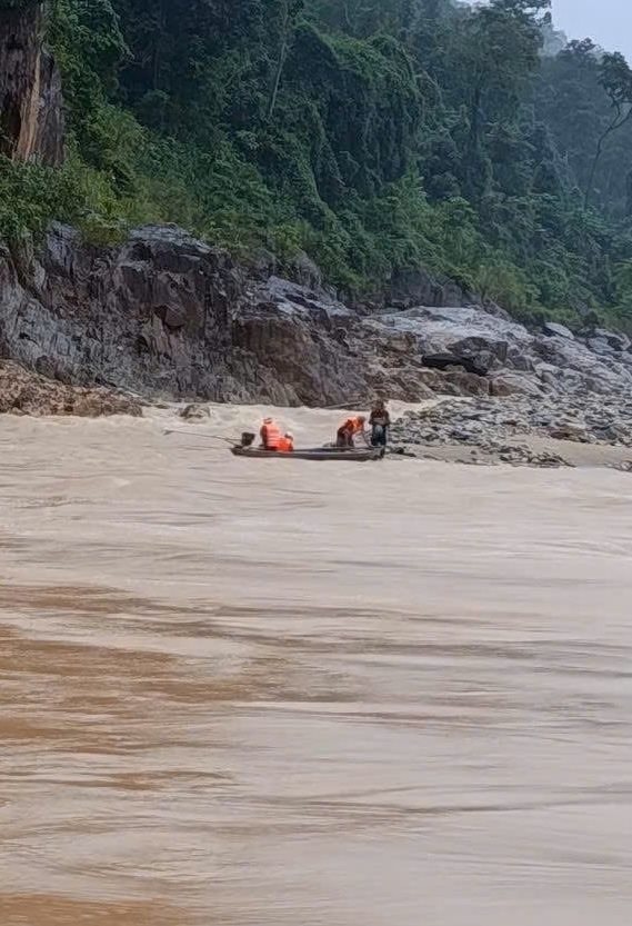 Do nước chảy xiết cùng thời tiết xấu, lực lượng chức năng phối hợp với gia đình hướng dẫn 2 người dân giữ nguyên vị trí an toàn, chờ lực lượng tiếp cận khi điều kiện cho phép.