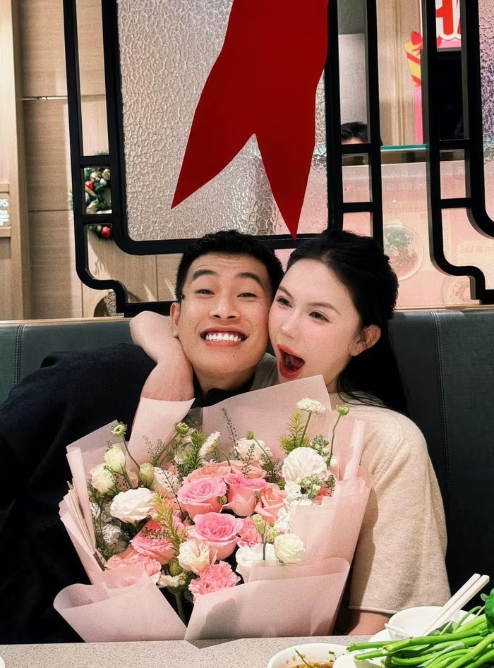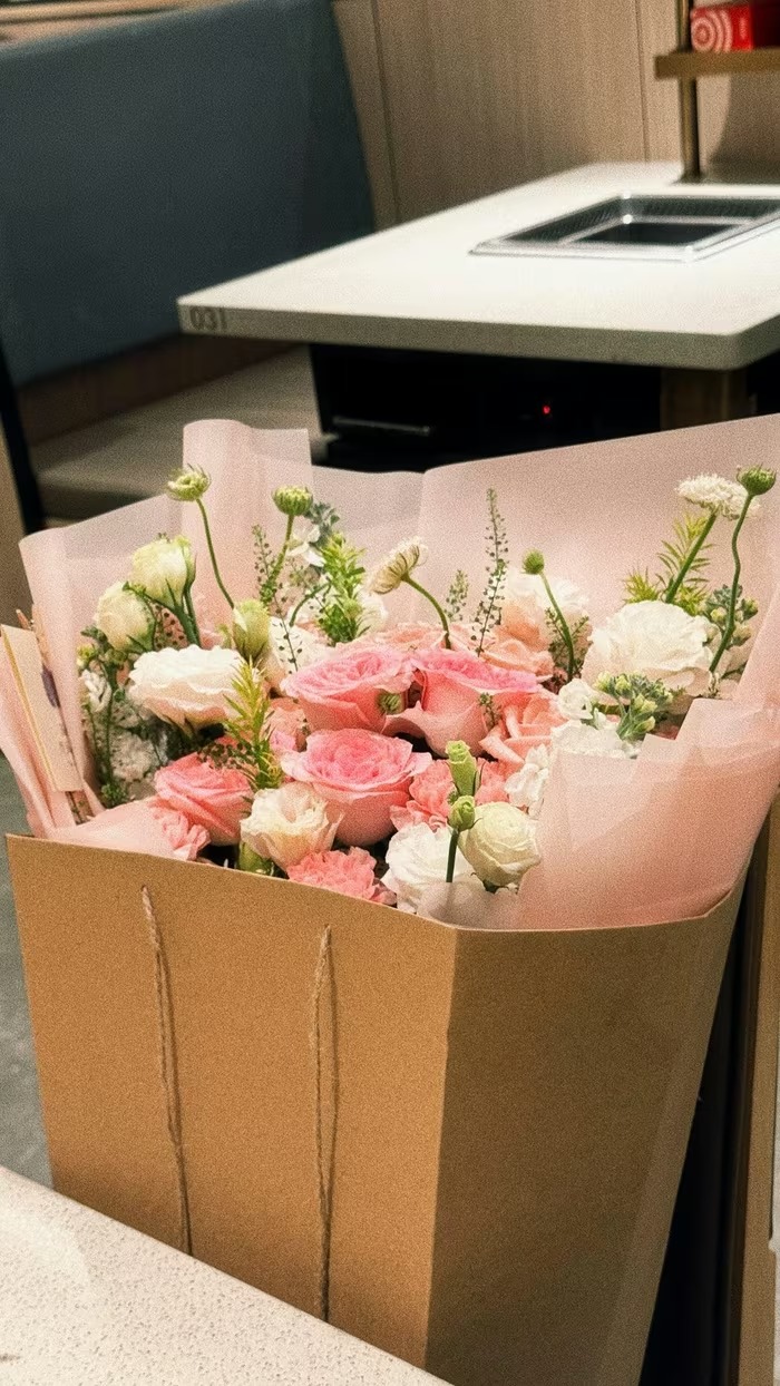 Ỉn Cheng được ông xã tặng một bó hoa tươi thắm, được gói tinh tế, mang đến không khí tươi vui, ngọt ngào. |
