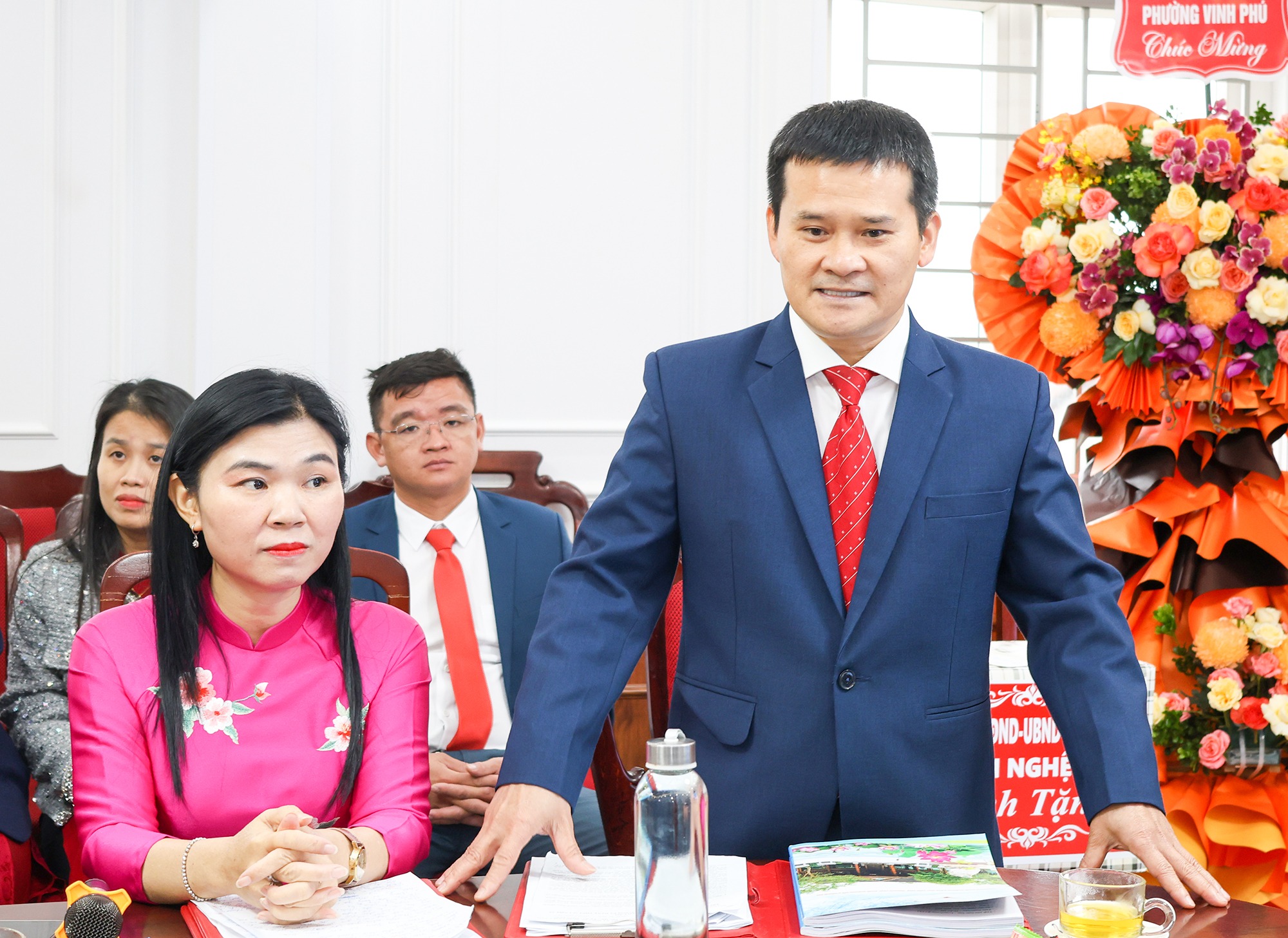 Phó Bí thư Thường trực Tỉnh ủy, Chủ tịch HĐND tỉnh Hoàng Nghĩa Hiếu chúc mừng những thành tích nổi bật đã đạt được của trường |