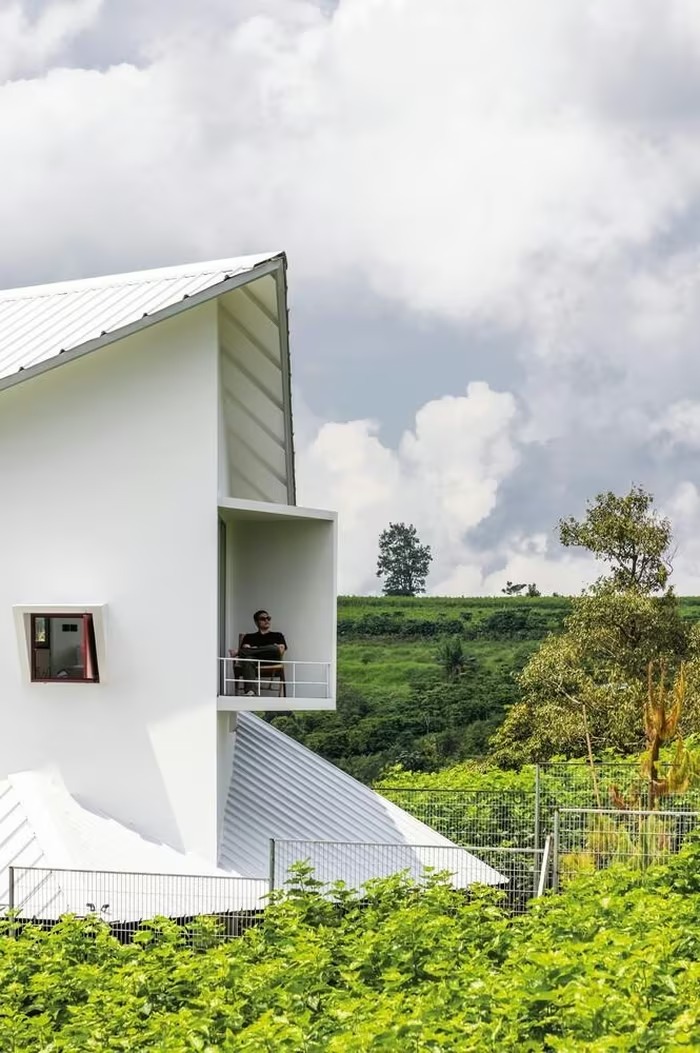 Nằm trên ngọn đồi thoải dọc theo trục đường Lý Thái Tổ (thành phố Bảo Lộc, tỉnh Lâm Đồng), Dâu Tằm House nổi bật với tầm nhìn rộng mở ra thung lũng xanh mát. Ảnh: Hiroyuki Oki |