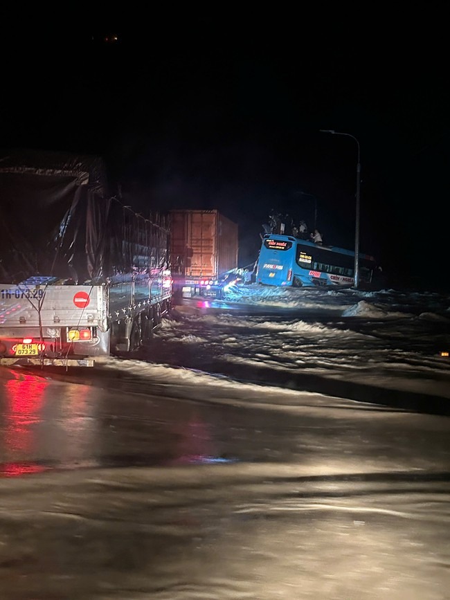 Phương tiện lúc này đang di chuyển trên Quốc lộ 1, hướng TP HCM – Quảng Ngãi, trên xe có 30 hành khách và 3 người thuộc tổ lái.