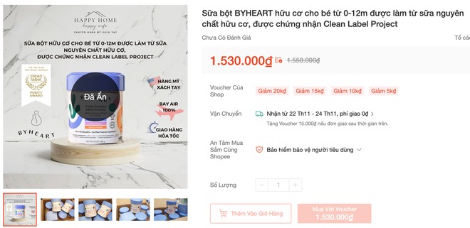Sản phẩm sữa công thức ByHeart Whole Nutrition từng được bán trên một số sản thương mại |