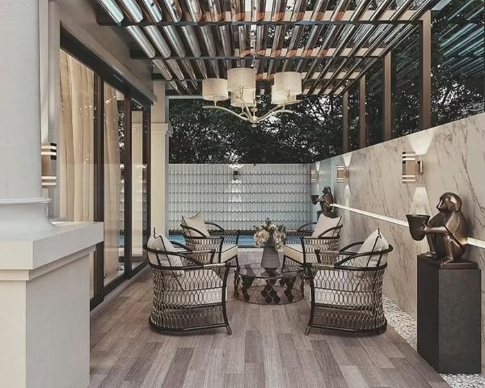 Không gian thư giãn bên ngoài căn biệt thự. Ảnh: FBNV |