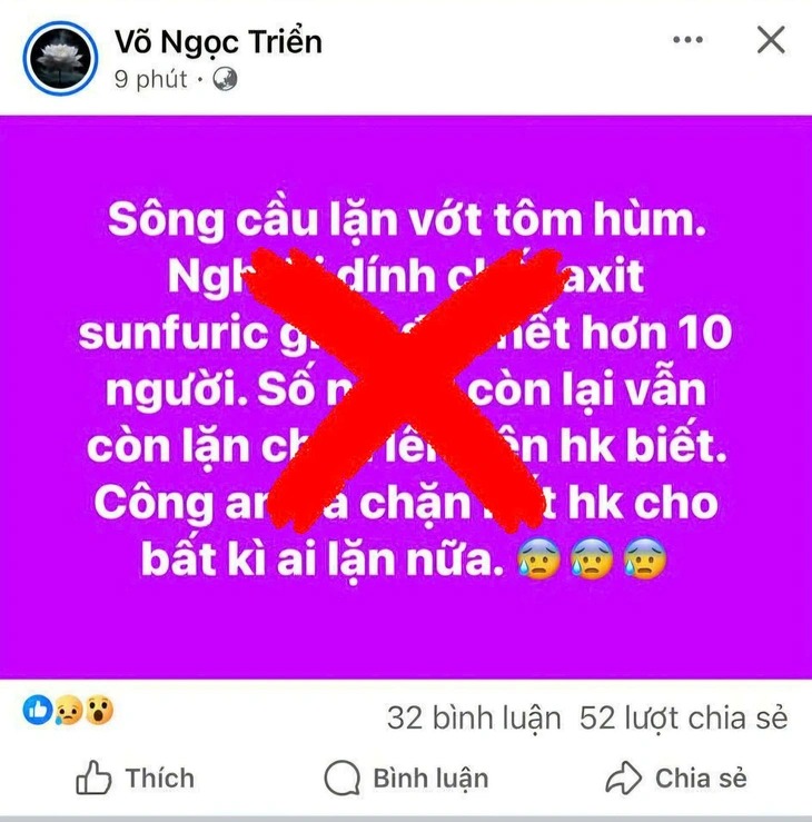 'Vỡ đập Đồng Cam', '10 người chết vì dính axit khi lặn vớt tôm hùm' là tin giả