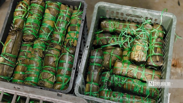 Không chỉ có các loại thực phẩm nhanh, từ chiều hôm trước, bà con Quảng Ngãi đã tất bật tụ họp về đây gói bánh chưng, bánh tét gửi đi cho đồng bào vùng lũ. Mỗi người mỗi việc, người lau lá, người vo nếp, người chuẩn bị nhân, người gói bánh… đều hồ hởi góp công sức. Từ chiều qua đến sáng nay, 5 nồi bánh lớn với hàng trăm cặp bánh được ra lò, chuyển nhanh vào vùng lũ.