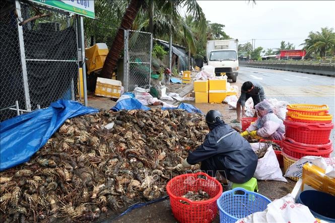 Người nuôi tôm hùm “trắng tay” sau lũ. |