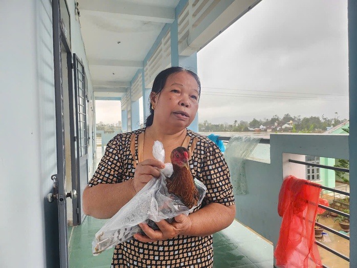 Thấy con gà sống sót sau lũ dữ, bà Hoa đưa đến trường học cùng tránh trú |