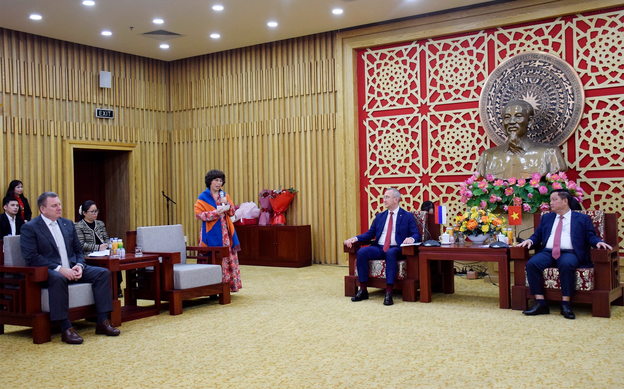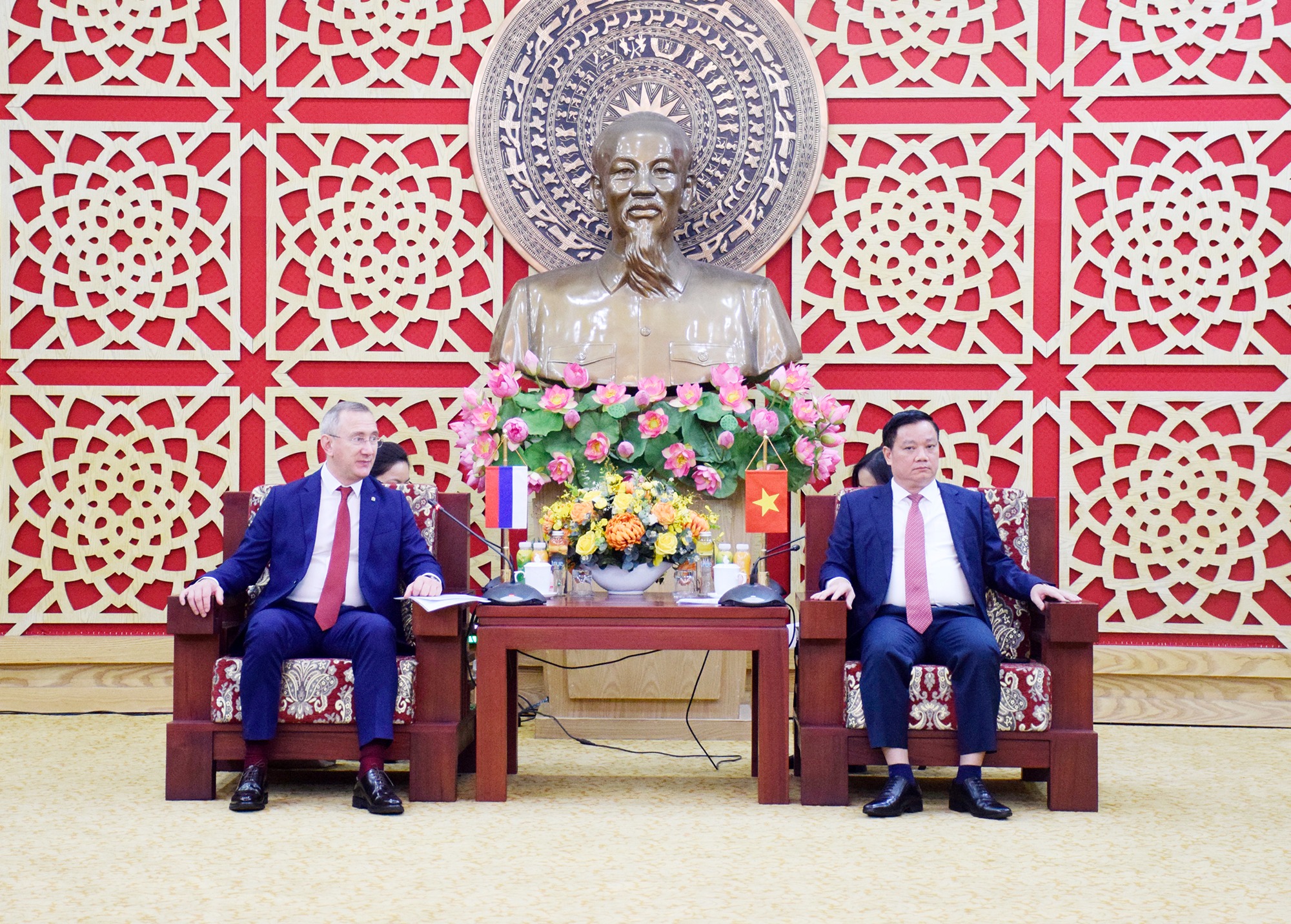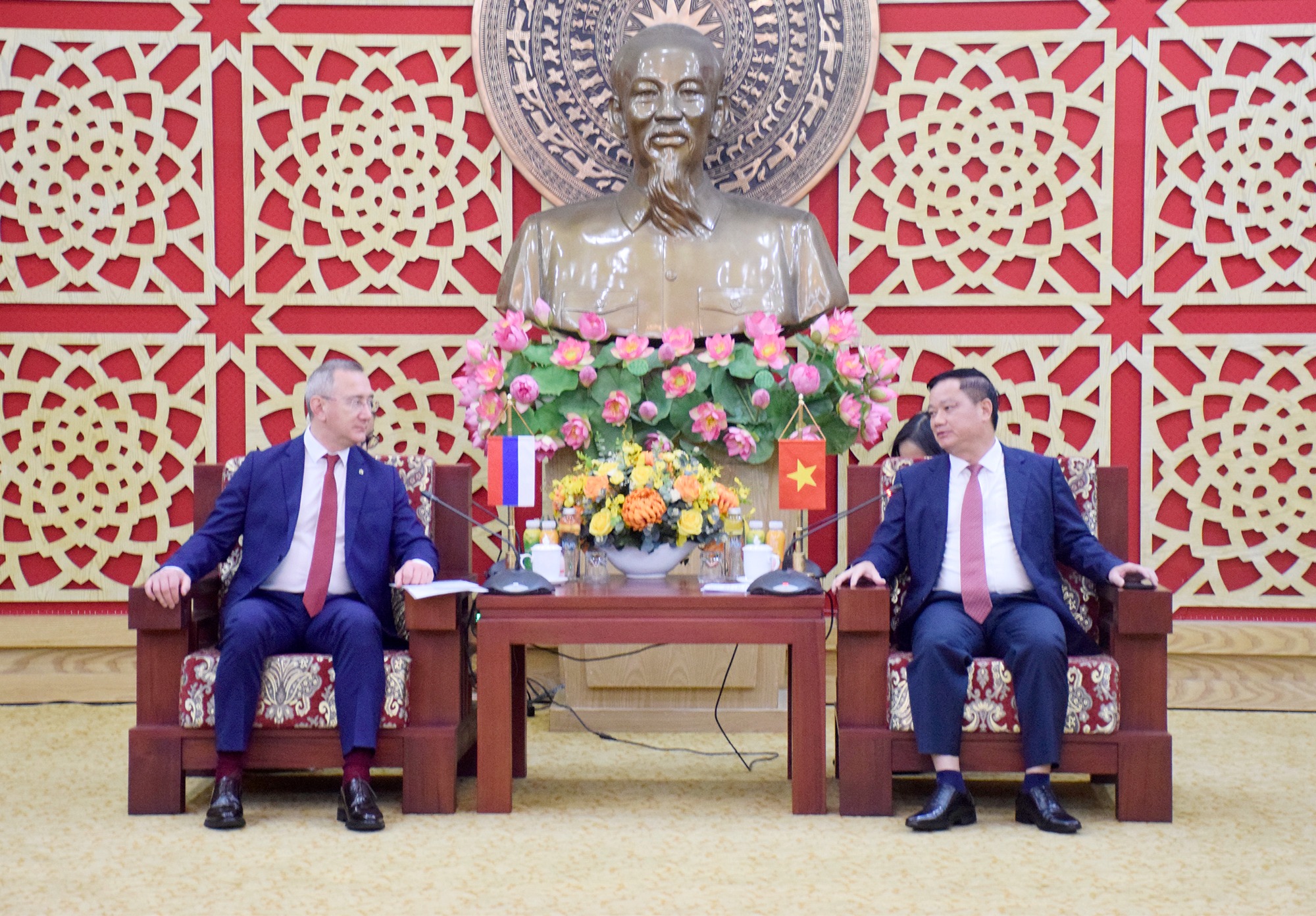 Về hợp tác với các địa phương của Liên bang Nga, Bí thư Tỉnh ủy cho biết: Mối quan hệ hợp tác đặc biệt giữa Nghệ An (quê hương Chủ tịch Hồ Chí Minh) và tỉnh U-li-a-nốp (quê hương V.I. Lê-nin) được duy trì từ năm 1987 và đã được ký lại thỏa thuận hợp tác vào tháng 5/2025 trên nhiều lĩnh vực. Hai tỉnh đã tổ chức Lễ khánh thành tượng đài Chủ tịch Hồ Chí Minh tại tỉnh U-li-a-nốp (2017) và tượng đài V.I. Lê-nin tại thành phố Vinh (2024).