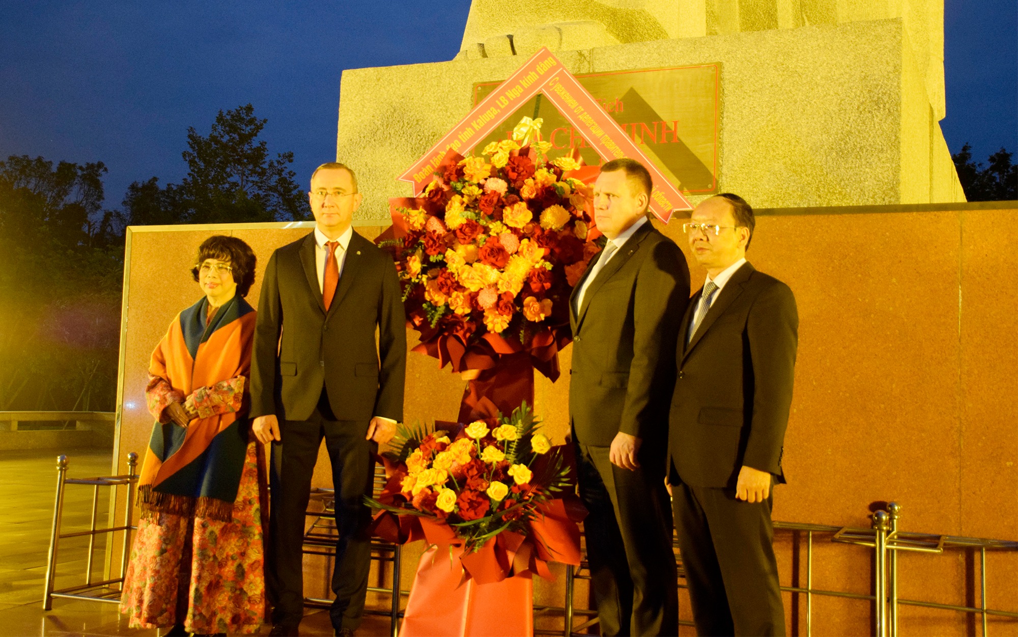*/ Trong chuyến thăm và làm việc tại Nghệ An, Đoàn công tác tỉnh Kaluga đã đến dâng hương tại Đền Chung Sơn – nơi thờ gia tiên Chủ tịch Hồ Chí Minh; dâng hoa tại Quảng trường Hồ Chí Minh và tượng đài Lê Nin tại phường Trường Vinh.