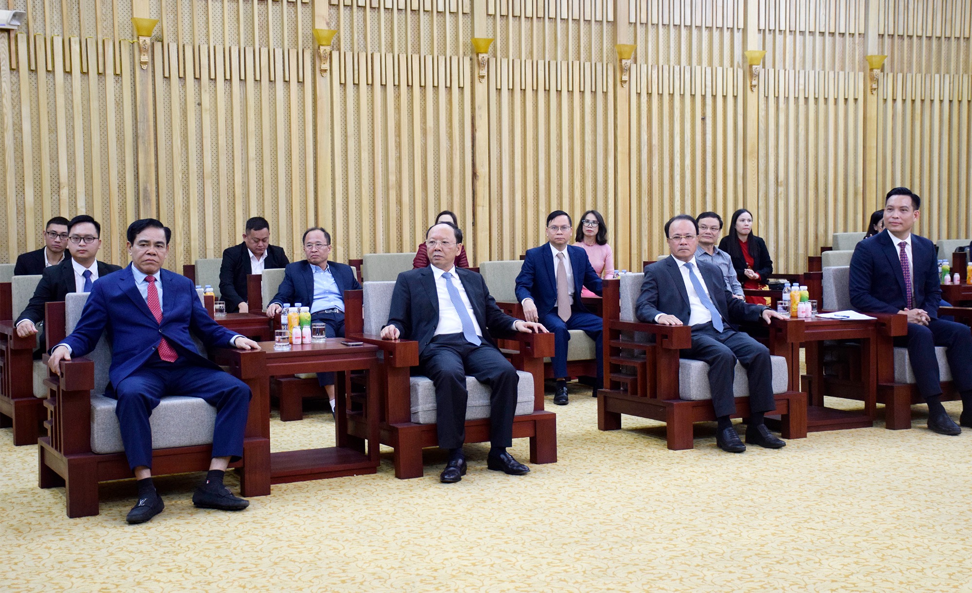 Bí thư Tỉnh ủy Nguyễn Khắc Thận, Chủ tịch UBND tỉnh Võ Trọng Hải cùng các đồng chí lãnh đạo tỉnh, lãnh đạo Sở, ngành đón tiếp trọng thị Ngài Thống đốc và đoàn công tác tỉnh Kaluga |