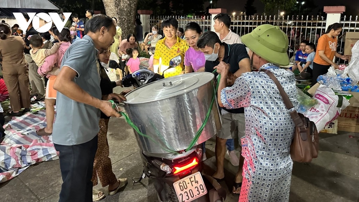 Ngoài việc gói bánh, bà con cũng vận động rất nhiều nhu yếu phẩm, đồ khô, sữa...để đóng góp. Các em nhỏ cũng tham gia vận chuyển, sắp xếp các thùng hàng lên đến cả ngàn hộp, xếp cao hơn 2m. Dù vất vả, nhưng với tấm lòng hướng về đồng bào bị thiệt hại bởi bão lũ, ai cũng hăng hái làm tốt nhất phần việc của mình.