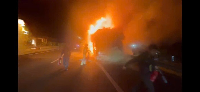 Tiếp nhận thông tin, lực lượng CSGT, Cảnh sát PCCC Công an tỉnh Tây Ninh khẩn trương điều 2 xe chữa cháy chuyên dụng cùng hàng chục cán bộ, chiến sĩ có mặt hiện trường để dập lửa, điều tiết giao thông. Khoảng 30 phút sau, ngọn lửa đã được dập tắt hoàn toàn.