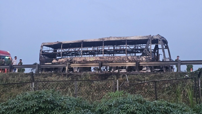 Theo ngành chức năng, bước đầu xác định chiếc xe khách bị cháy trơ khung và thiệt hại một số hành lý của khách. May mắn, 10 hành khách trên xe thoát ra ngoài an toàn.