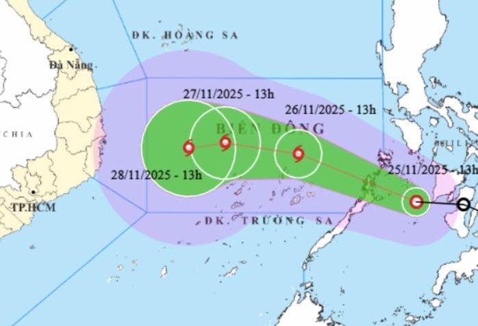 Theo Trung tâm Dự báo khí tượng thủy văn quốc gia, hồi 13 giờ gày 25-11, vị trí tâm áp thấp nhiệt đới ở vào khoảng 10,4 độ Vĩ Bắc; 121,3 độ Kinh Đông, trên vùng biển phía Tây của miền Trung Philippines.