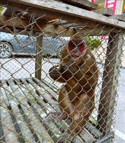 Khỉ mặt đỏ là động vật nguy cấp, quý, hiếm thuộc nhóm IIB, có tên trong Sách đỏ Việt Nam và được thống kê trong Sách đỏ của Liên minh quốc tế Bảo tồn thiên nhiên và tài nguyên thiên nhiên (IUCN) 1997. Ảnh: TTXVN phát |