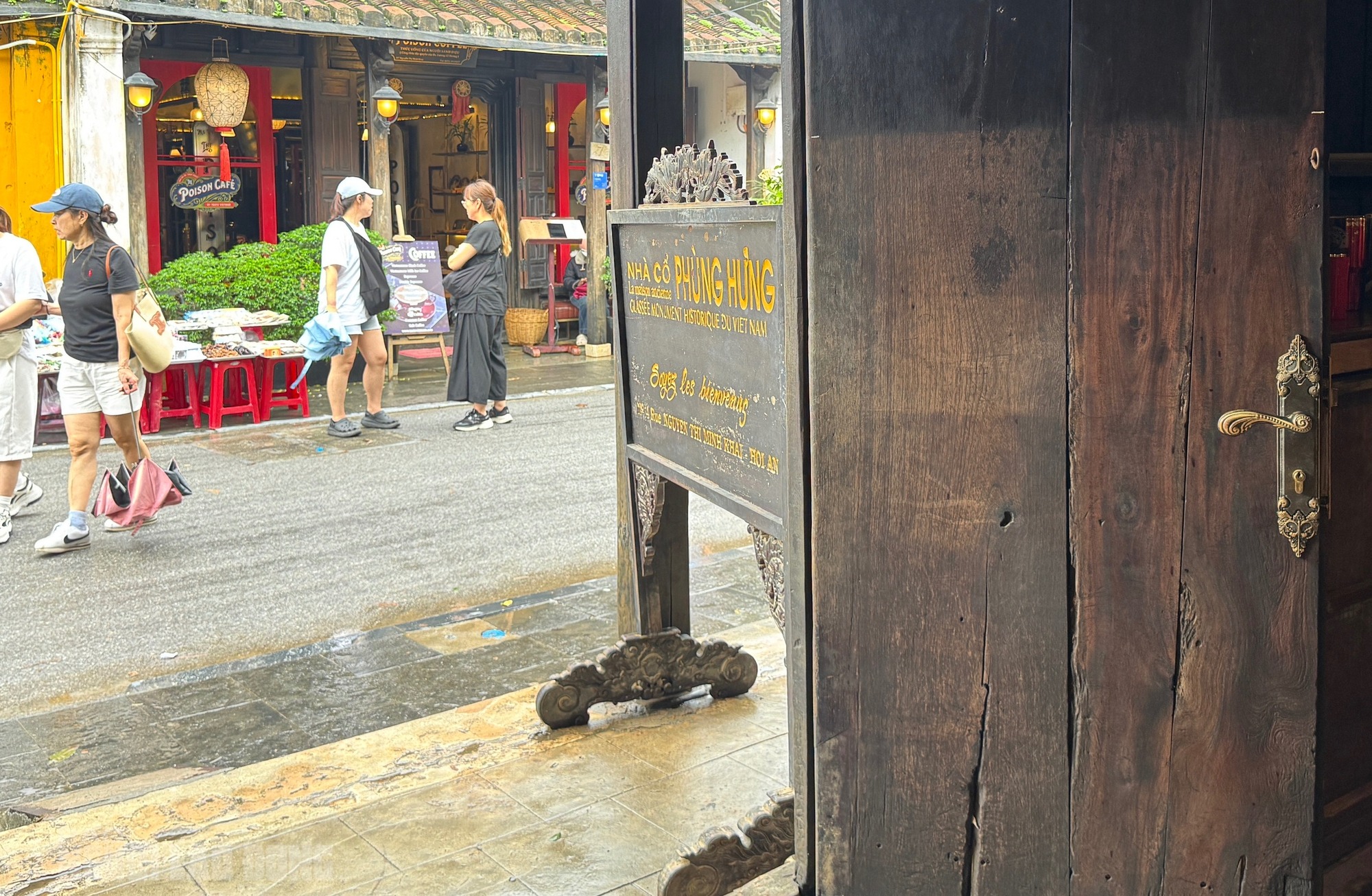 Nhà cổ Phùng Hưng, điểm tham quan nằm trên đường Nguyễn Thị Minh Khai, ngập 1,4 m trong đợt lụt lịch sử. Nước lụt làm phai màu cửa gỗ ở ngay lối vào nhà để lại dấu vết có thể nhìn rõ bằng mắt thường |
