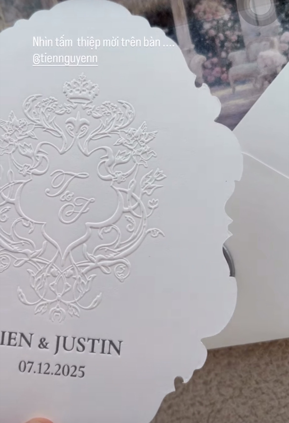 Mới đây, thiệp cưới của cặp đôi tài phiệt này đã được hé lộ. Thiệp mời có màu trắng chủ đạo, thiết kế đơn giản nhưng toát lên sự sang trọng, xa hoa. Theo thông tin bên trong thiệp mời, đám cưới của cặp đôi sẽ diễn ra vào ngày 7/12 tới. Như những hôn lễ truyền thống, cả hai tổ chức lễ gia tiên ở nhà riêng, sau đó chiêu đãi khách mời tại nhà hàng. Địa điểm em chồng Hà Tăng lựa chọn là một trung tâm tiệc cưới lớn, được nhiều cô dâu như Midu, Minh Tú... từng lựa chọn.