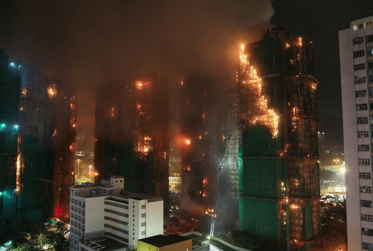 Vào chiều 26/11, một đám cháy dữ dội bùng phát tại khu chung cư Wang Fuk Court ở quận Tai Po. Ngọn lửa được cho là xuất phát từ hệ thống giàn giáo tre bao bọc bên ngoài cụm gồm 8 tòa nhà cao 31 tầng, nơi có gần 2.000 căn hộ với khoảng 4.000 cư dân sinh sống. Đám cháy lan nhanh chỉ trong vài phút và nhanh chóng bao trùm toàn bộ khu nhà.
