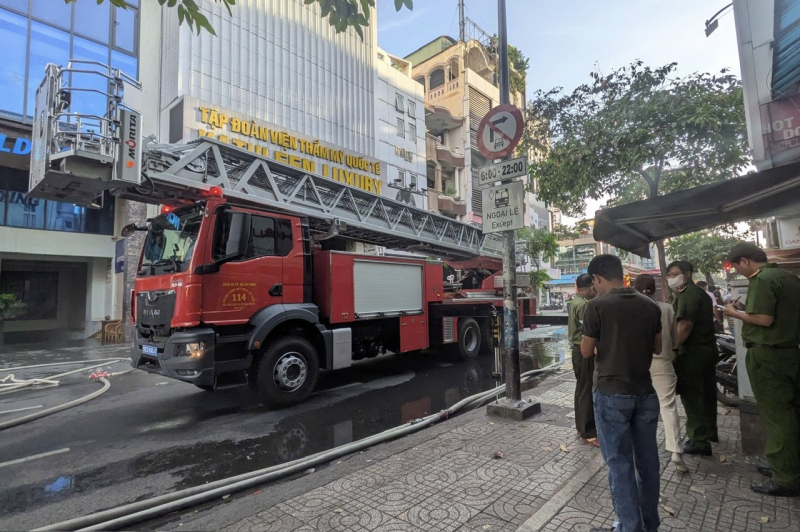 Bảo vệ của thẩm mỹ viện phối hợp với Công an phường dùng bình chữa cháy mini dập lửa nhưng không thể khống chế. Phòng Cảnh sát PCCC và CNCH, Công an TP Hồ Chí Minh đã điều động phương tiện (trong đó có xe thang) cùng hàng chục cán bộ chiến sĩ xuống hiện trường triển khai chữa lửa.