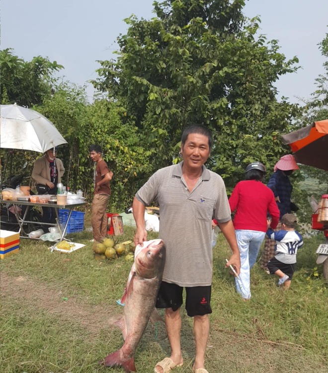 "Cá sông tự nhiên nên chất lượng thịt rất tốt. Sự kiện hiếm có nên người dân và thương lái đến đông lắm. Tôi cũng kiếm được chút ít", Sơn nói.