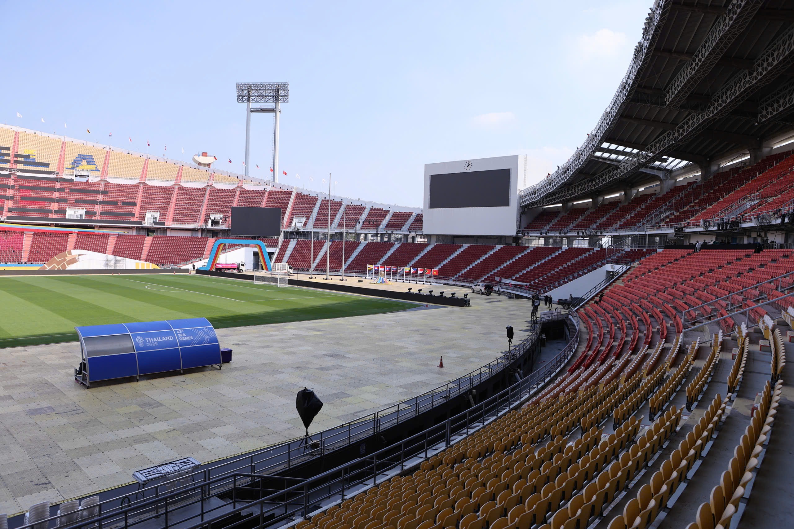 Sân Rajamangala cũng có một nơi đặc biệt, đó là khu vực thắp ngọn đuốc trong suốt quá trình từ lúc khai mạc cho tới hôm bế mạc SEA Games 33 (Ảnh: Đức Cường) |