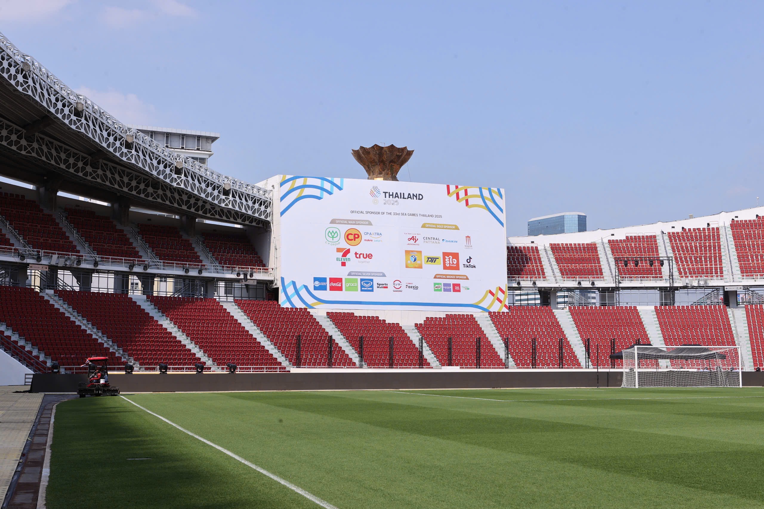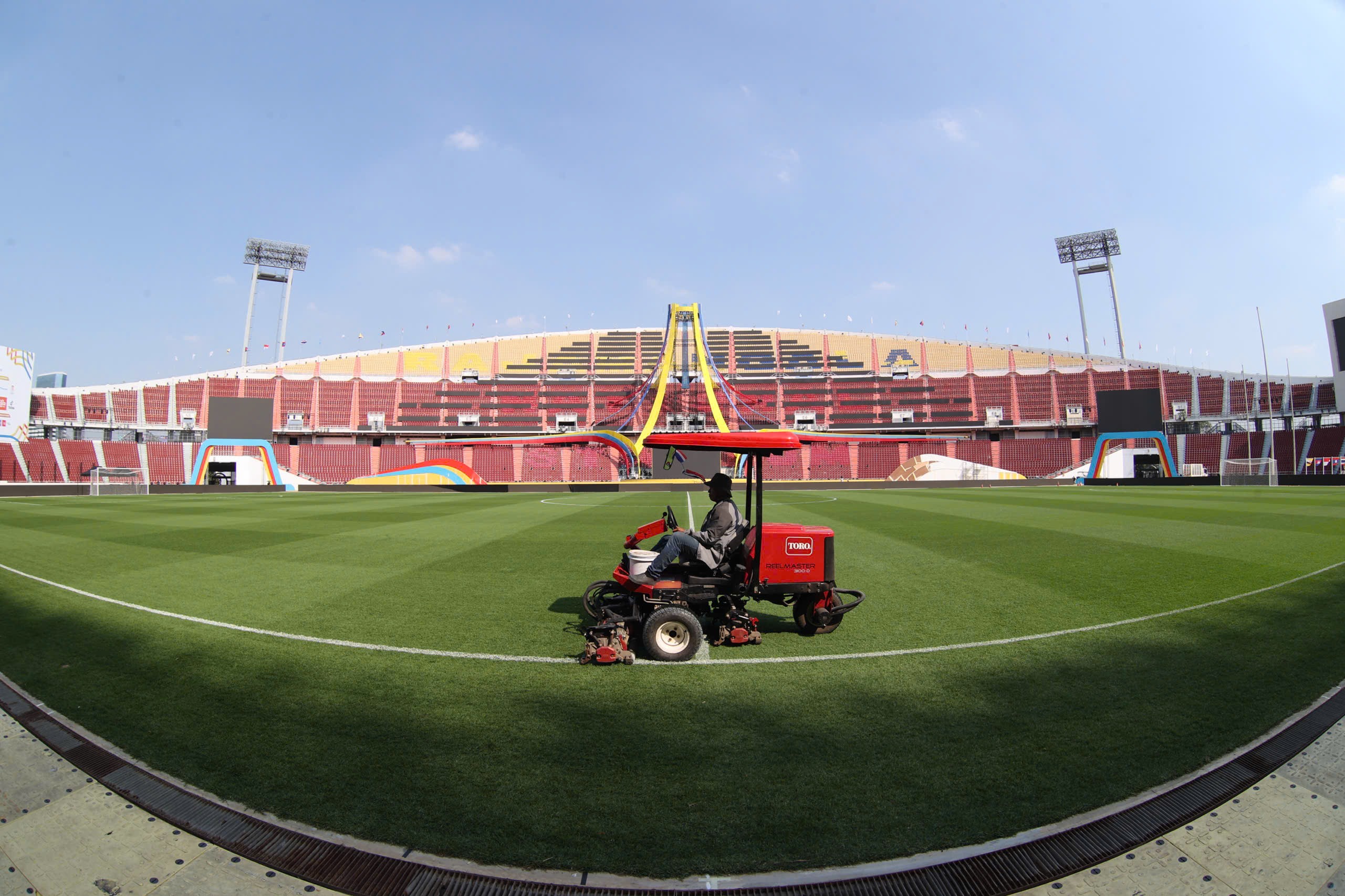 Mặt cỏ sân Rajamangala đang được chăm sóc rất tốt trước trận đấu giữa U22 Việt Nam và U22 Lào tại bảng B SEA Games 33. Với điều kiện thi đấu lý tưởng, các cổ động viên đang rất ngóng chờ vào những pha bóng hay tới từ cuộc đối đầu này (Ảnh: Đức Cường) |