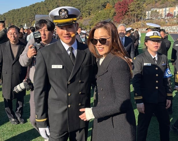 Lim Se-ryung, sinh năm 1977, là con gái cả của gia tộc Daesang - một trong những tập đoàn thực phẩm lớn nhất Hàn Quốc. Trong ảnh, bà Lim xuất hiện tại lễ trao quân hàm sĩ quan hải quân của con trai Lee Ji-ho (24 tuổi) hôm 28/11. |