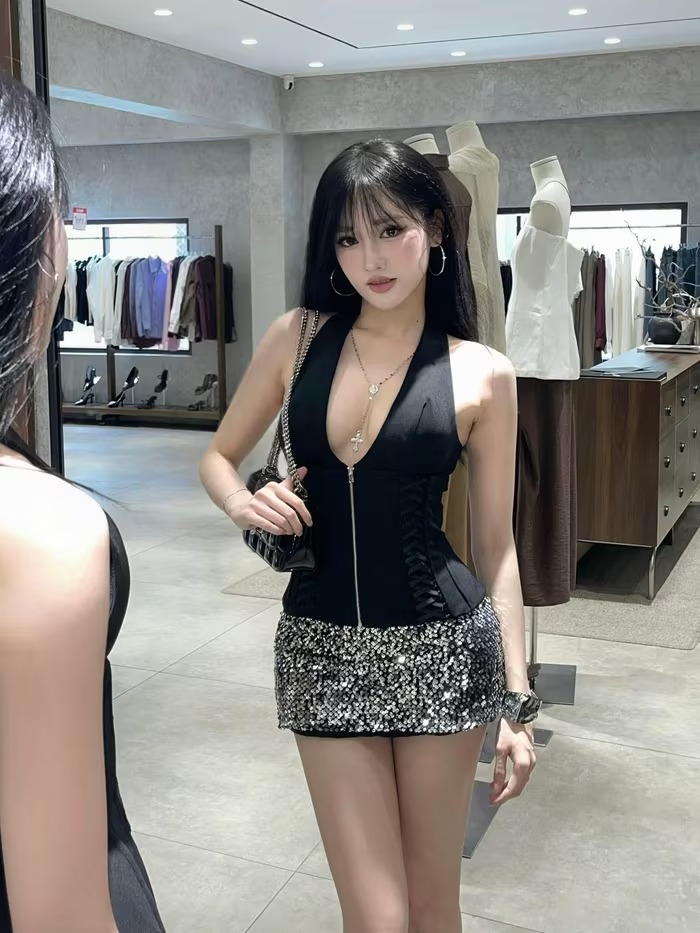 Thiết kế này không chỉ tạo điểm nhấn tinh tế cho vòng một mà còn khéo léo siết eo, tôn lên đường cong "đồng hồ cát" quyến rũ và đôi chân thon dài của Khánh Huyền. (Ảnh: IGNV) |