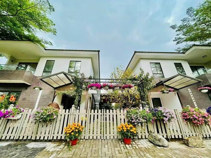 Biệt thự mang theo phong cách hiện đại, sang trọng, nổi bật với sân vườn thoáng rộng, nhiều cây xanh và hoa. Ảnh: FBNV |