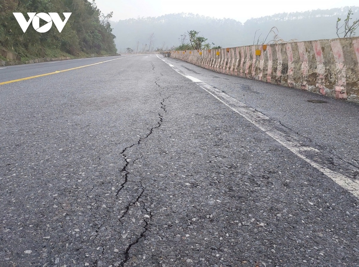 Vết nứt dài trên Quốc lộ 1A qua đèo Ngang, gần xã Phú Trạch, tỉnh Quảng Trị |