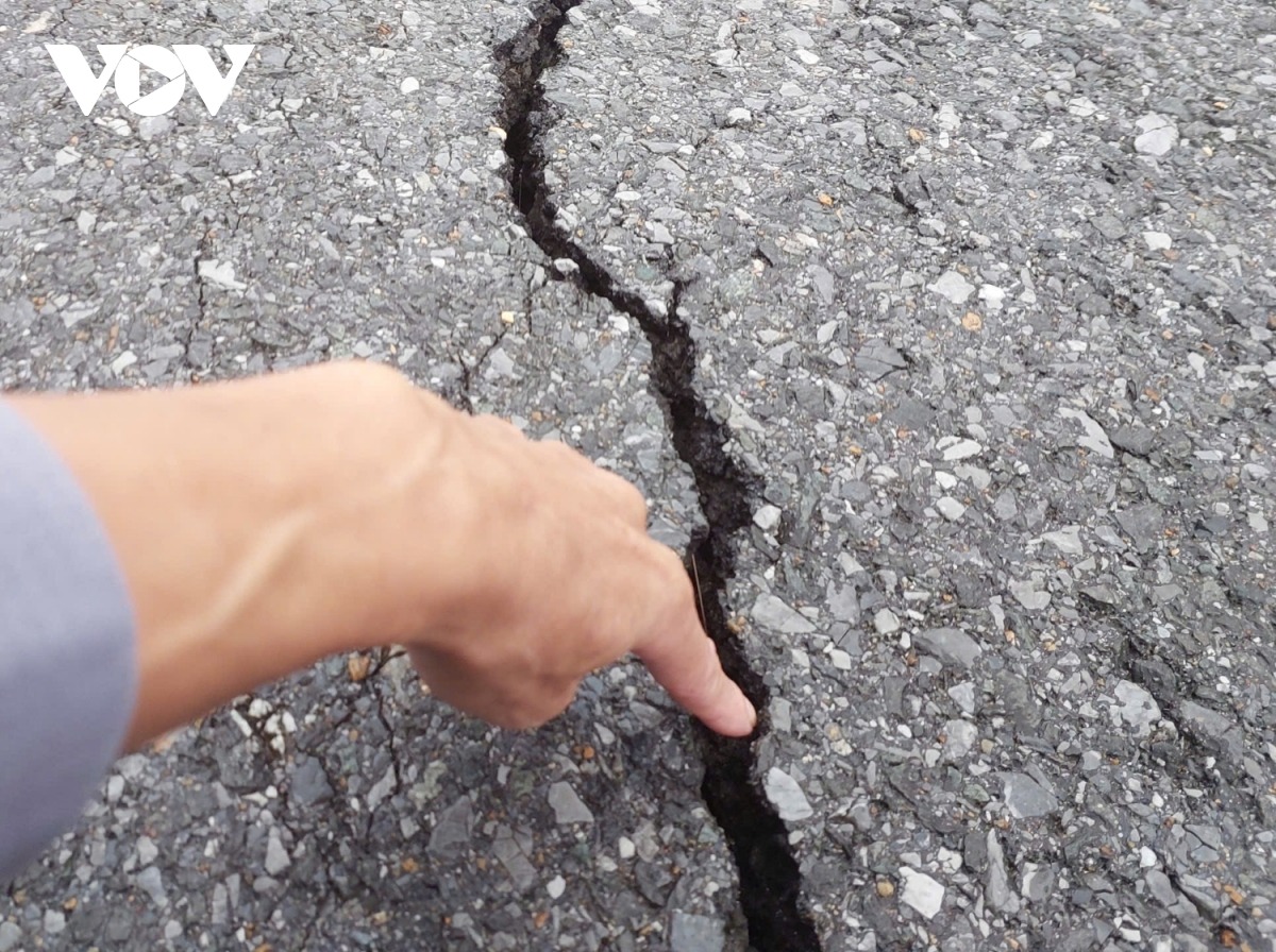 Xuất hiện vết nứt dài gần nơi từng xảy ra việc giun trồi lên mặt đất ở Quảng Trị