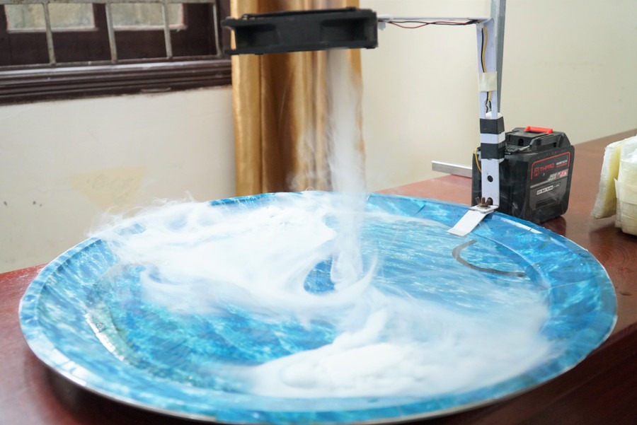Sản phẩm trực quan mô phỏng sự hình thành của bão, áp thấp nhiệt đới trên biển của Trung tâm GDNN-GDTX Tân Kỳ. Ảnh: Hồ Lài |