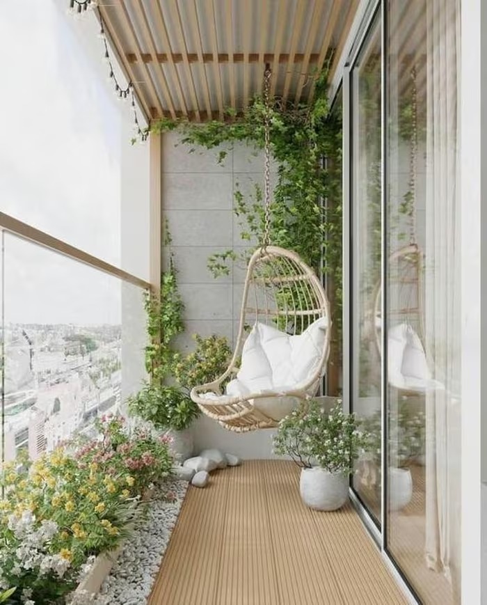 Ban công có khu vực ghế ngồi thư giãn. Ảnh: FBNV |