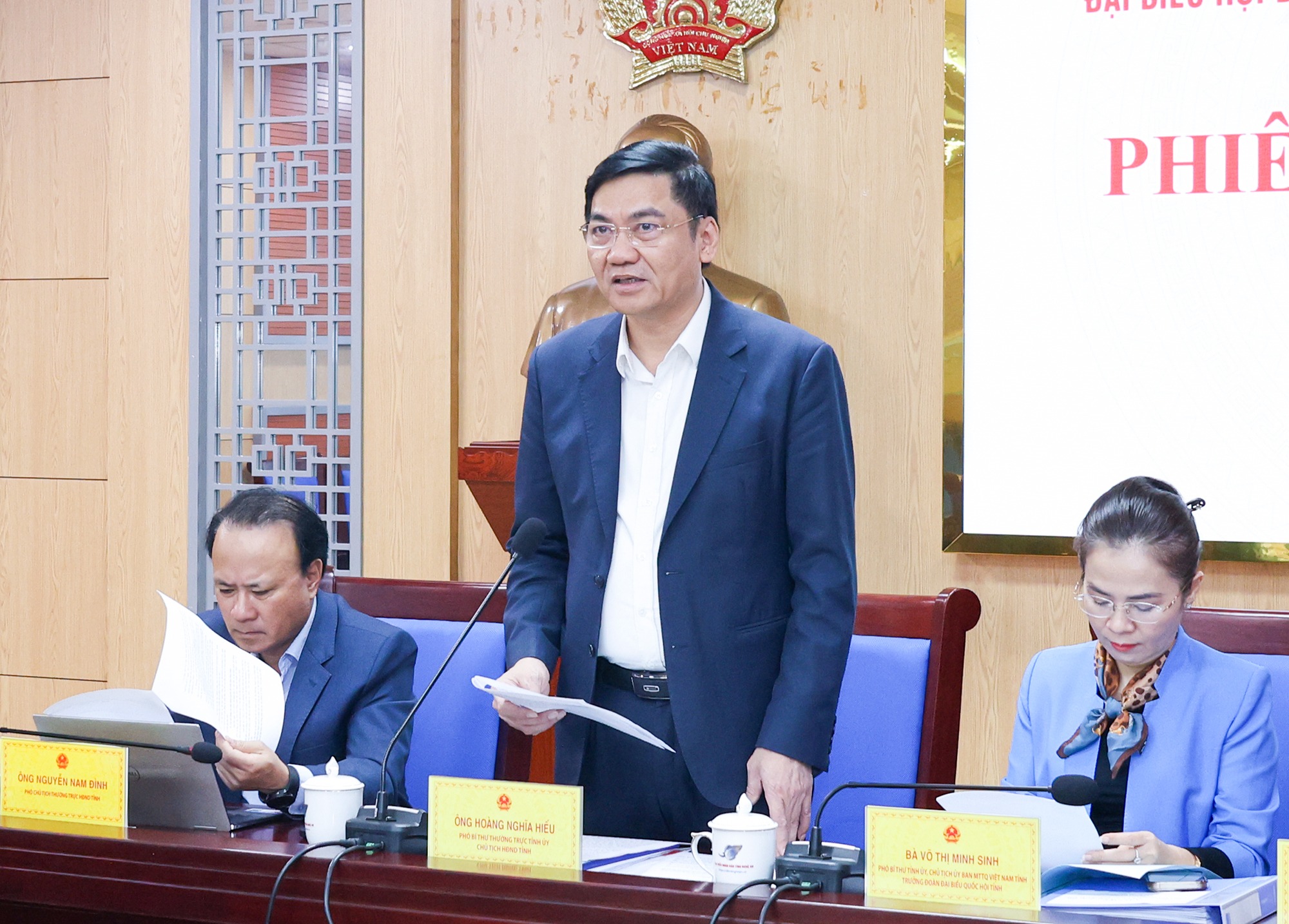 Phó Bí thư Thường trực Tỉnh ủy, Chủ tịch HĐND tỉnh Hoàng Nghĩa Hiếu phát biểu |