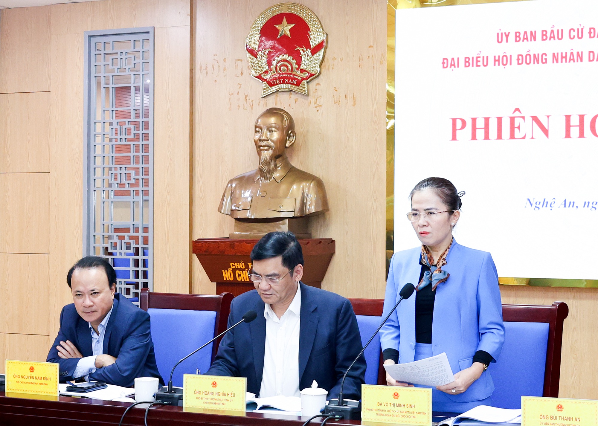 Sở Nội vụ (Cơ quan Thường trực Uỷ ban bầu cử tỉnh) tiếp thu các ý kiến góp ý của thành viên Uỷ ban bầu cử khẩn trương hoàn thiện trình ban hành Quy chế làm việc của Ủy ban bầu cử tỉnh; Kế hoạch thực hiện công tác bầu cử; Thông báo phân công nhiệm vụ thành viên Uỷ ban bầu cử tỉnh; Quyết định thành lập các Tiểu ban và Tổ giúp việc của Uỷ ban bầu cử tỉnh; Quyết định ấn định và công bố đơn vị bầu cử đại biểu HĐND tỉnh và trình Hội đồng bầu cử quốc gia; Trình Hội đồng bầu cử quốc gia ấn định đơn vị bầu cử đại biểu Quốc hội và cấp kinh phí phục vụ công tác bầu cử đại biểu Quốc hội khóa XVI và đại biểu HĐND tỉnh Nghệ An nhiệm kỳ 2026 – 2031.
