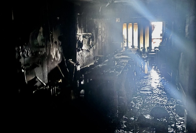 Bên trong hiện trường vụ cháy. |