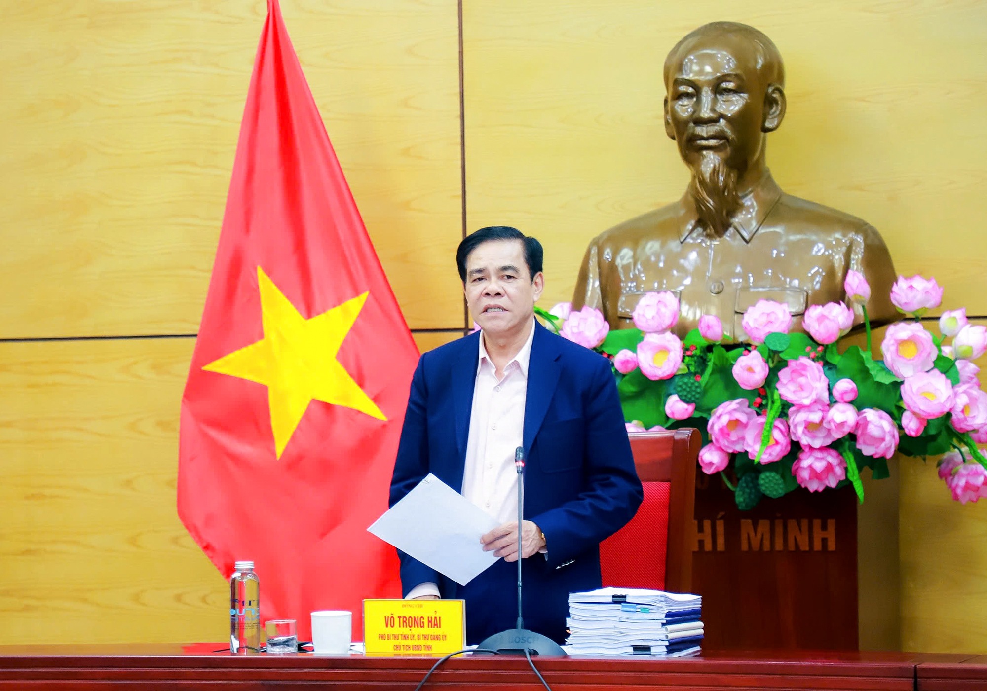 Phó Bí thư Tỉnh ủy, Chủ tịch UBND tỉnh, Bí thư Đảng ủy UBND tỉnh Võ Trọng Hải chủ trì cuộc họp |