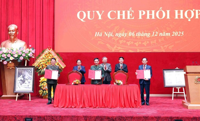 Ngày 6-12, tại Hà Nội đã diễn ra Lễ ký Quy chế phối hợp giữa Bộ Quốc phòng, Bộ Công an và Bộ Ngoại giao. Tổng Bí thư Tô Lâm; Chủ tịch nước Lương Cường và Thủ tướng Chính phủ Phạm Minh Chính dự buổi Lễ.