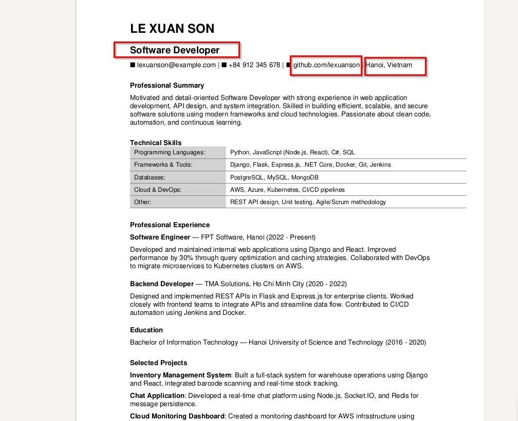Theo thông tin từ GBHackers, CV giả mạo này đến từ Hà Nội và thậm chí có một tài khoản GitHub được tạo từ năm 2021. Tuy nhiên, các nhà nghiên cứu phát hiện tài khoản này hoàn toàn trống rỗng, không hề đăng tải bất cứ thông tin nào, cho thấy nhiều khả năng nó chỉ được tạo ra để phục vụ cho chiến dịch tấn công.