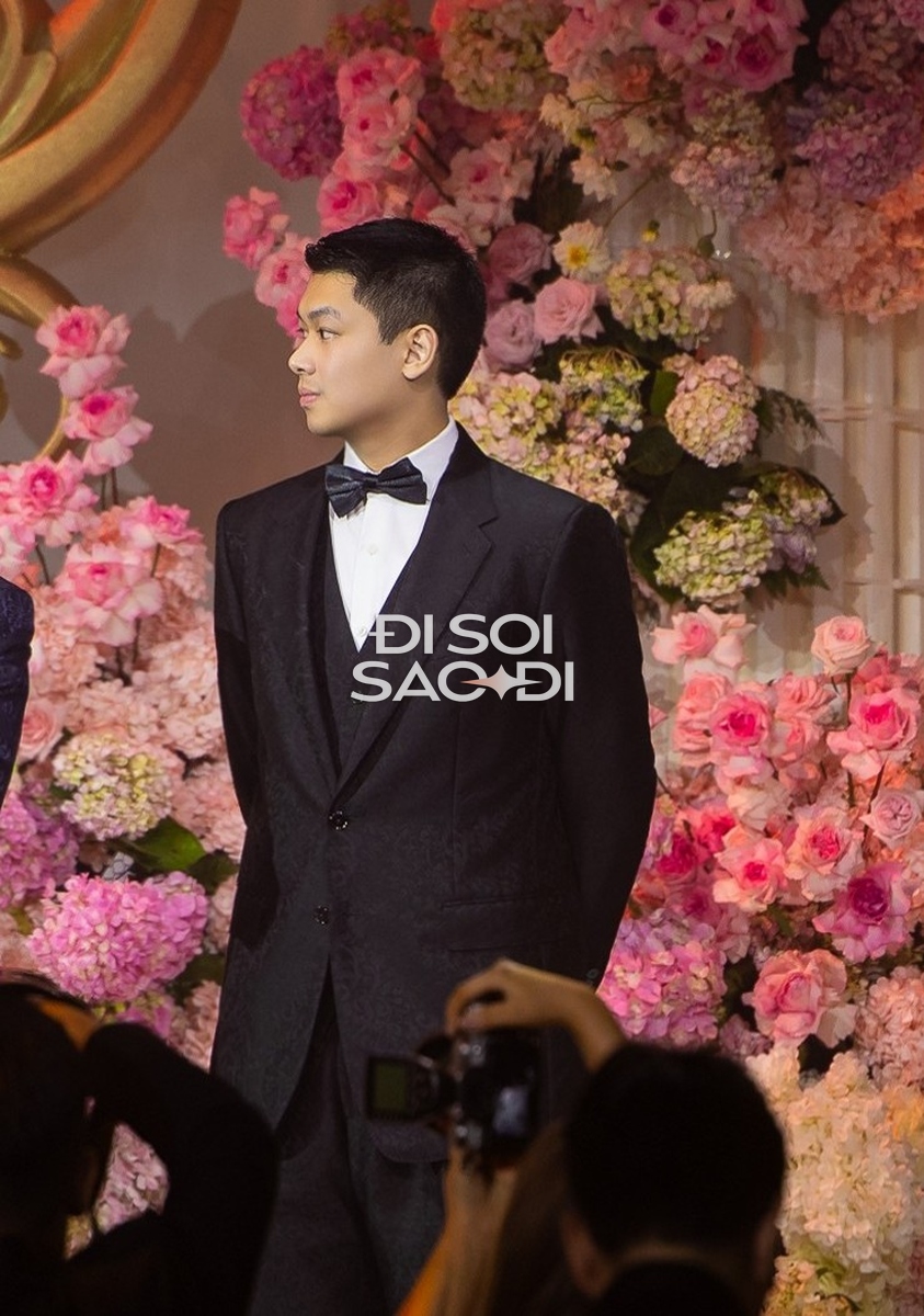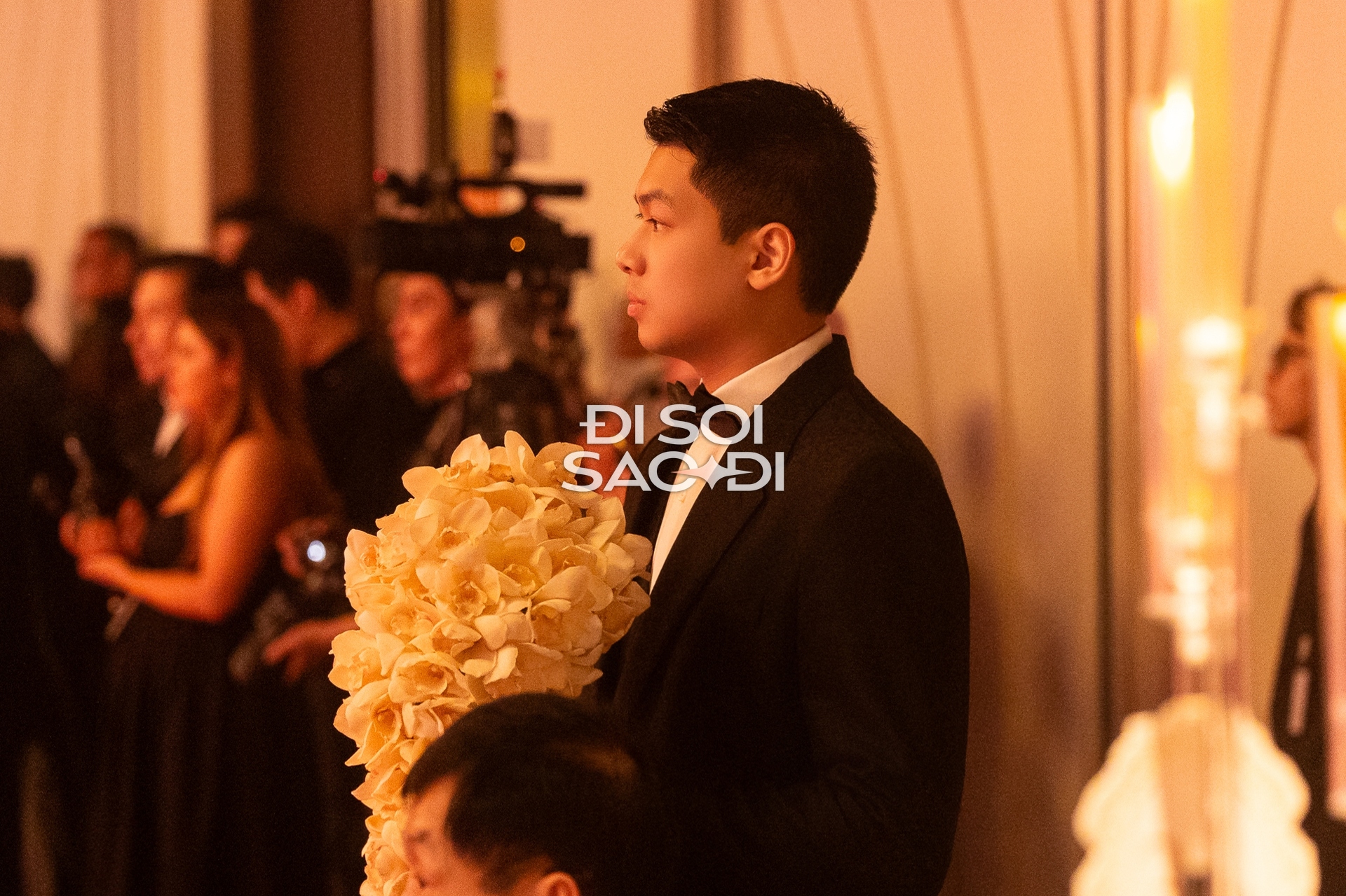 Trong ngày trọng đại của chị gái, Hiếu Nguyễn diện vest lịch thiệp, bảnh bao, “chiếm sóng” với diện mạo cực điển trai. Con trai út của tỷ phú Johnathan Hạnh Nguyễn có mặt từ rất sớm tại sảnh tiệc cưới. Anh chàng đảm nhận hỗ trợ việc tiếp khách VIP của gia đình. Không ít người nhận xét, khung hình của Hiếu Nguyễn dù mờ nhưng chất lượng visual lại cực đỉnh, đúng nghĩa tổng tài đời thực.
