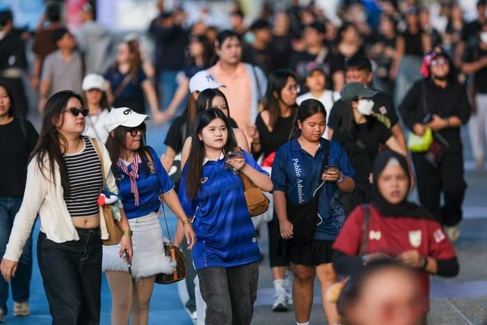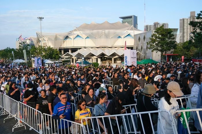 Trước giờ khai mạc SEA Games 33 tối 9/12, sân vận động Rajamangala (Thái Lan) đông nghịt người chờ xếp hàng.