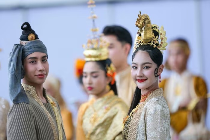 Một nhóm diễn viên trong trang phục truyền thống, chuẩn bị cho những tiết mục biểu diễn đặc biệt trong đêm khai mạc. |